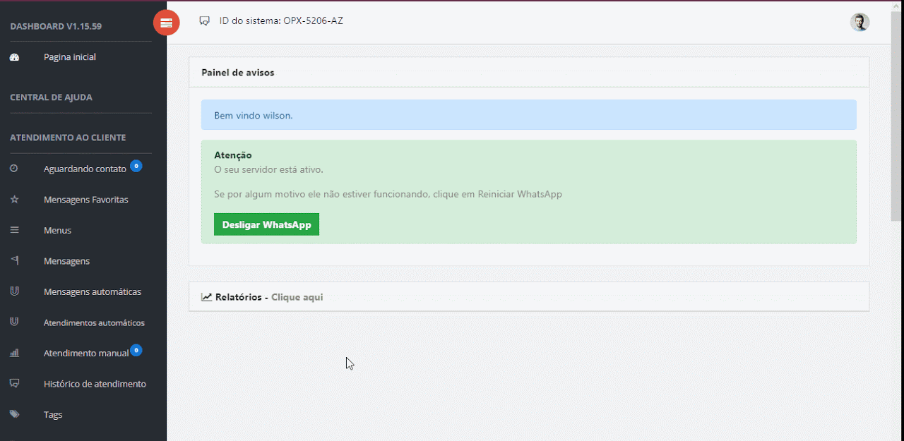 No exemplo acima aparecerá abaixo da mensagem configurada no menu principal: