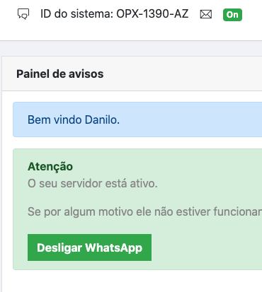 Ao fazer acesso ao seu sistema, você vai se deparar na parte superior do painel onde informa o “ID do sistema = OPX-XXXX-XX”.
